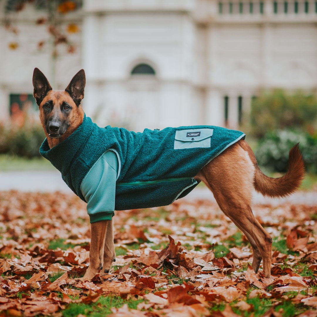 • Front and back opening to access harness clips • longer back for extra coverage • Made from a heavy-weight fleece for warmth • Acts as a base layer for winter coats in colder weather