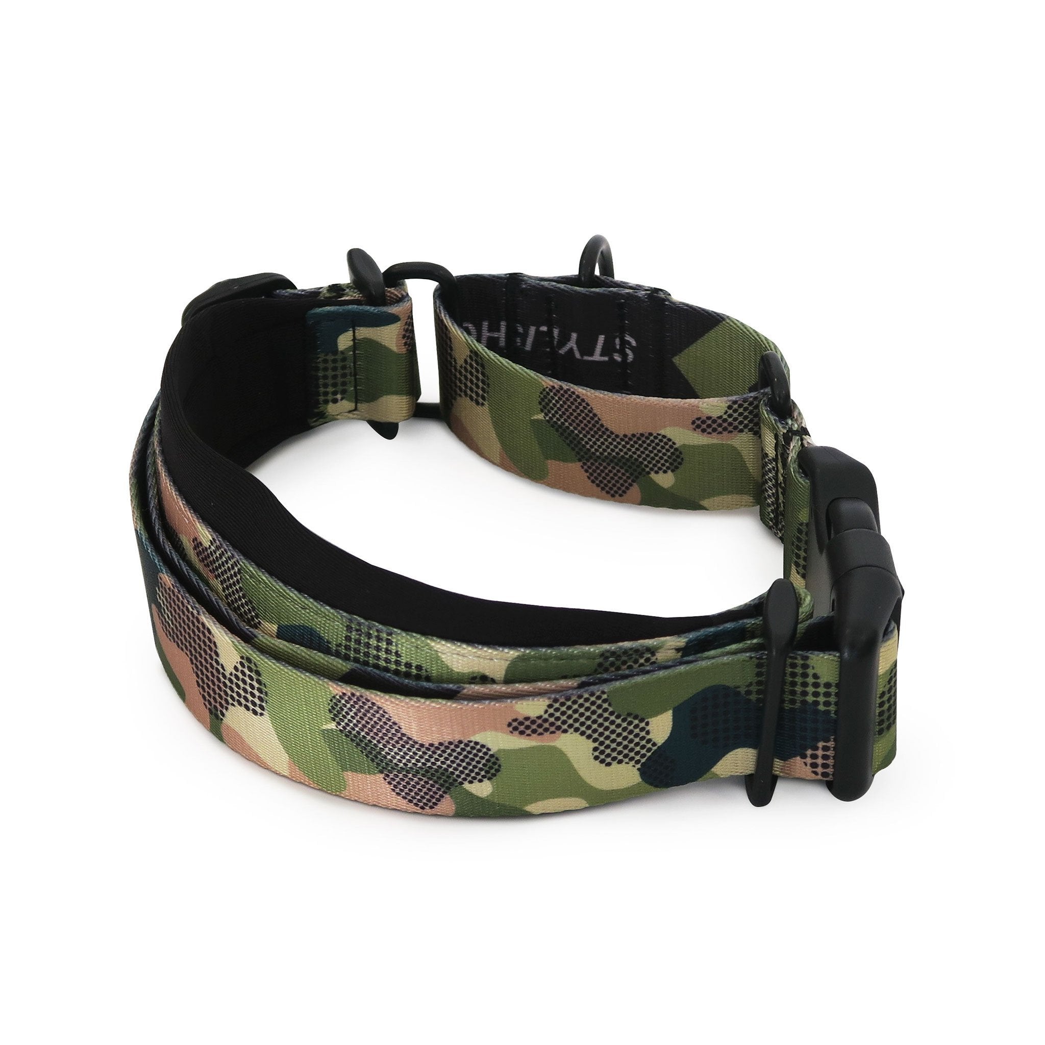 • Made from recycled plastic and materials • Lockable buckle • Adjustable • Padded wider neoprene for additional comfort • Martingale feature with D ring