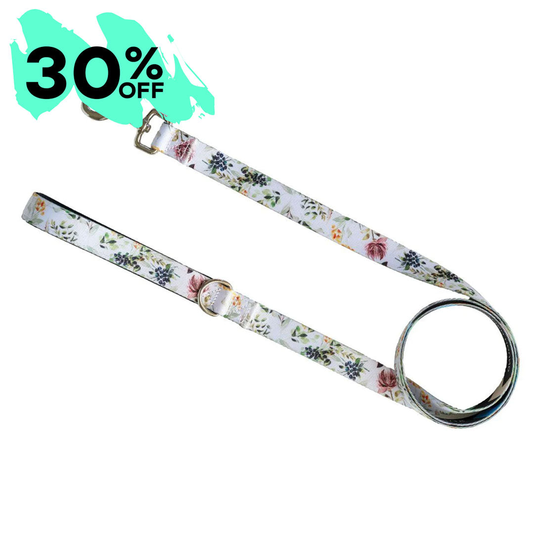 • D ring to clip the leash to yourself and be handsfree • Padded Neoprene handle for added comfort • Silky polyester finish that is soft on your dog's fur • Double-sided print • Sturdy hardware clip