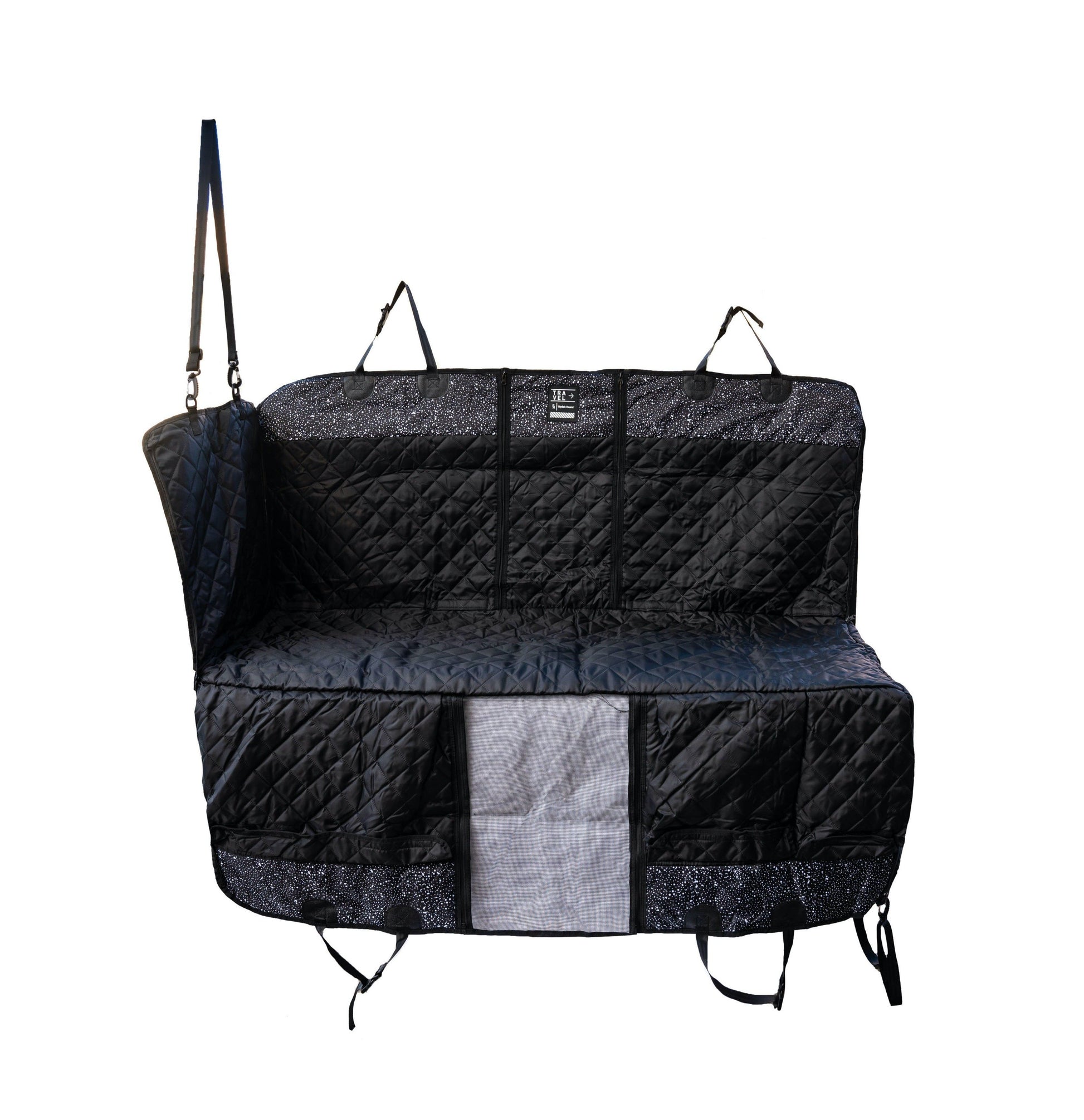 This back seat cover is a huge upgrade to our previous one. The straps are durable and the material isnt stiff and uncomfortable for our dog. The side zipped door flaps are excellent, especially with the clips. We haven't used the pockets, but they seem handy! Plus, its stylish!
