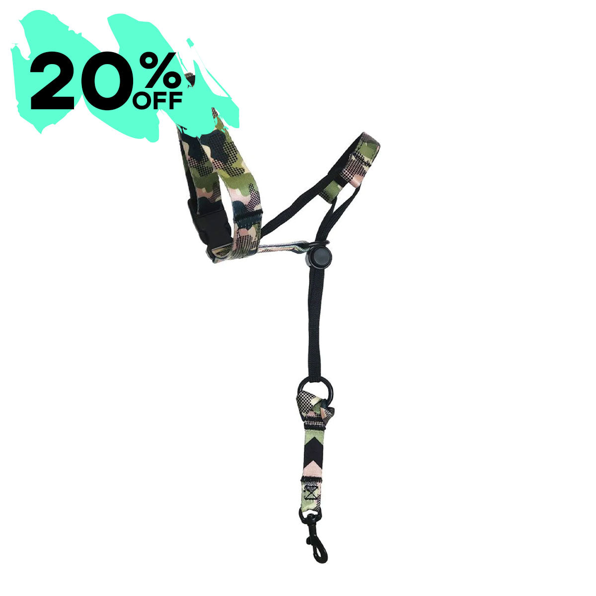 • Neoprene padded nose bridge • Silky smooth side thread • Under chin cord stopper • Lead ring • Includes safety clip to connect Halter to the collar