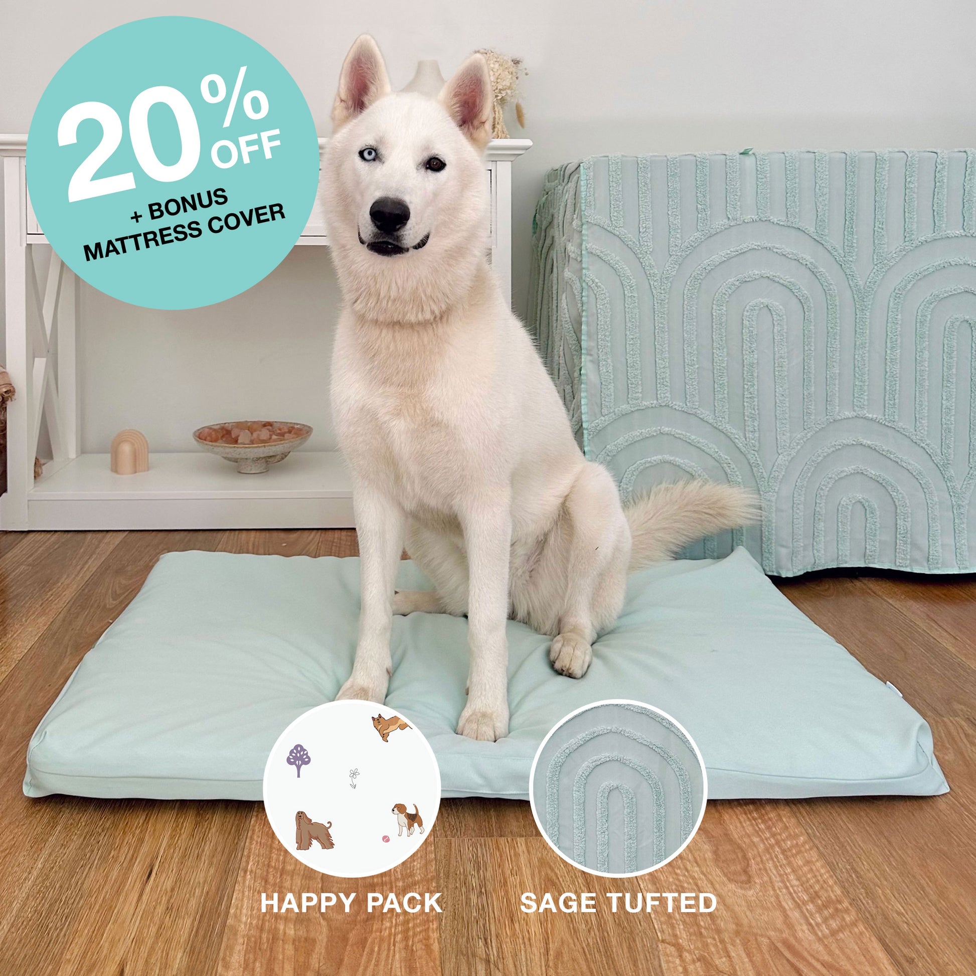 Basic Crate Cover + Mattress + Matching Mattress Cover + 1 Bonus Mattress Cover (chosen random for laundry day): Sage