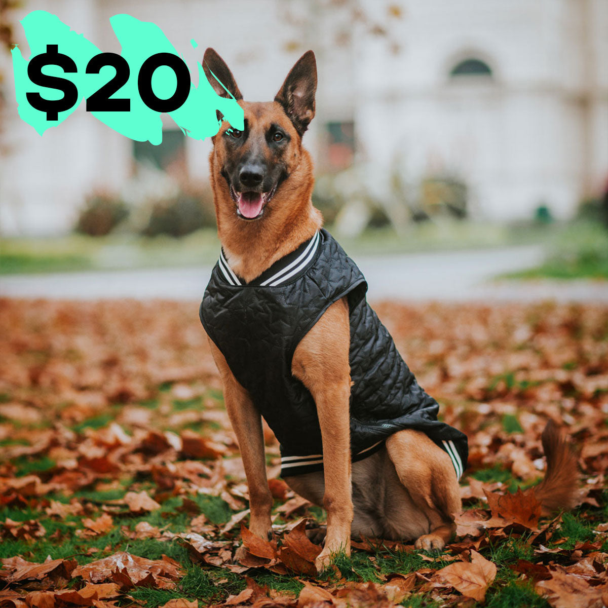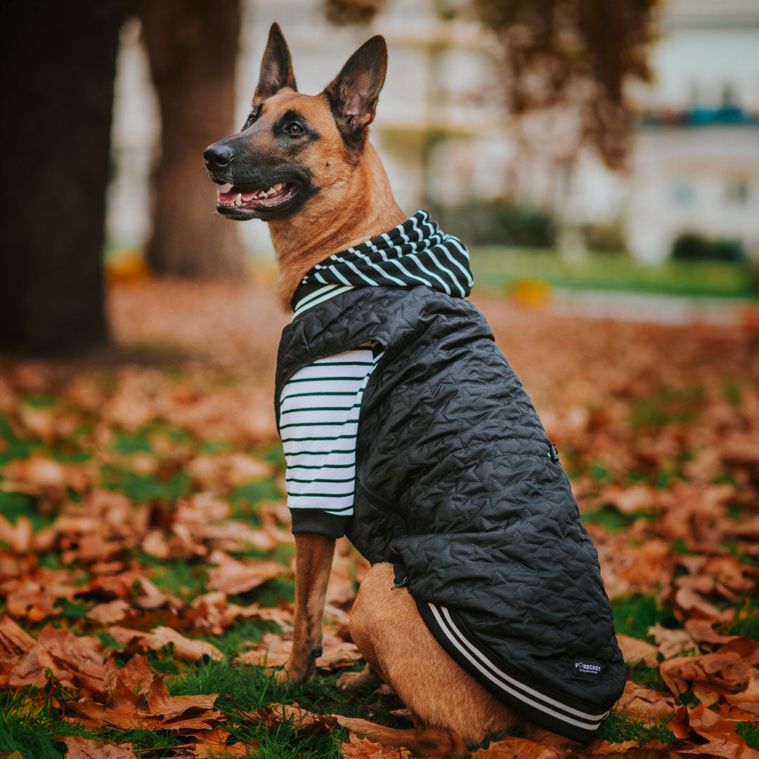 Drip drip in style this winter and fight the breezy chills this winter in our new lightweight, waterproof Grandslam Bomber. With an adjustable waist, side zipper, and front and back harness access dressing your dog for the winter is a breeze.