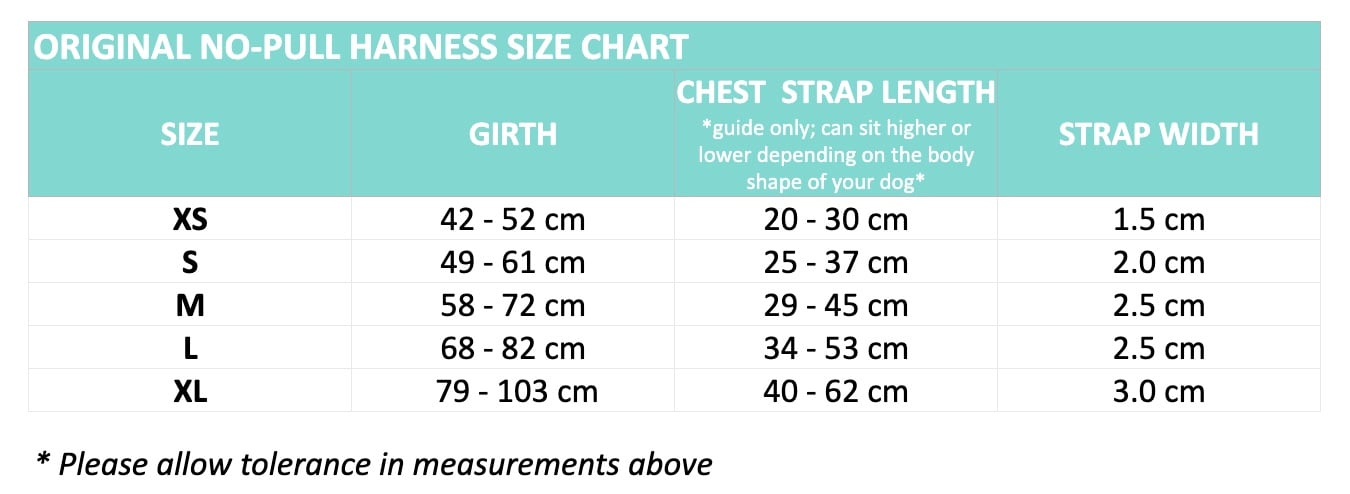 • The above chart is a guide, your dog may have a special body type (lean/wide chested) that may not fit into the size chart.