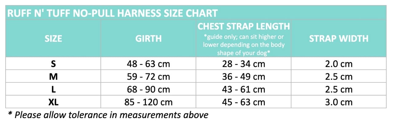 • The above chart is a guide, your dog may have a special body type (lean/wide chested) that may not fit into the size chart.