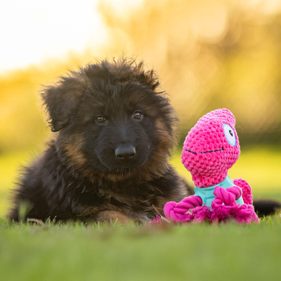 A cuddle toy with a clever twist—hide treats inside to keep your dog entertained and mentally stimulated. Perfect for gentle play, enrichment, and light chewers who love a soft reward. Heavy chewers please see our power chew section