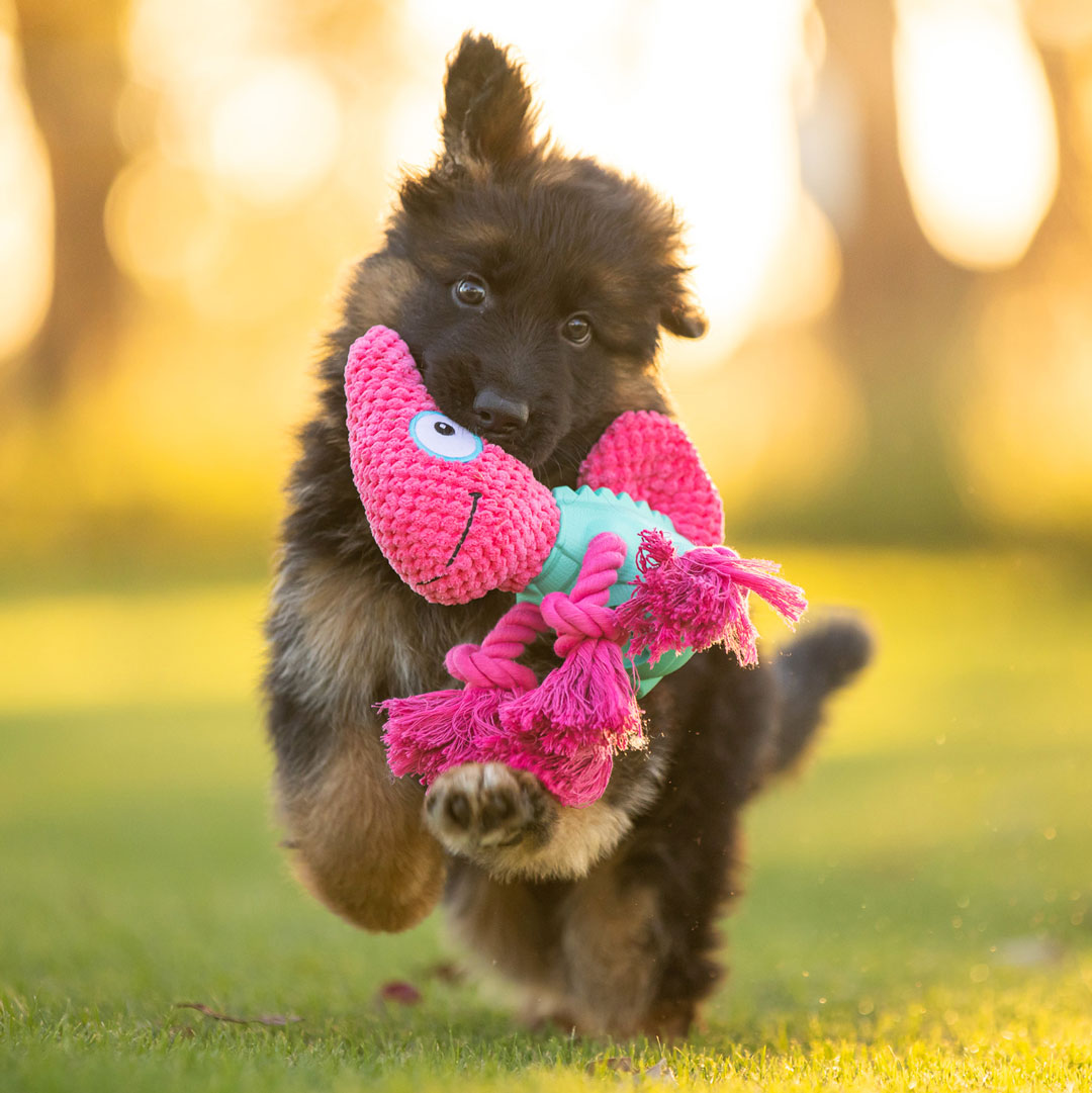NOTE: We do not stock “indestructible” or plastic nylon dog toys. Based on personal and veterinary experience, these toys can break dogs’ teeth. Our toys are thoughtfully designed to give your dog a fun, safe chewing experience and will breaking before causing dental injury. Always supervise your dog whilst playing with toys. Inspect and remove any loose pieces before continued use. Due to hygiene reasons, we do not offer refunds.