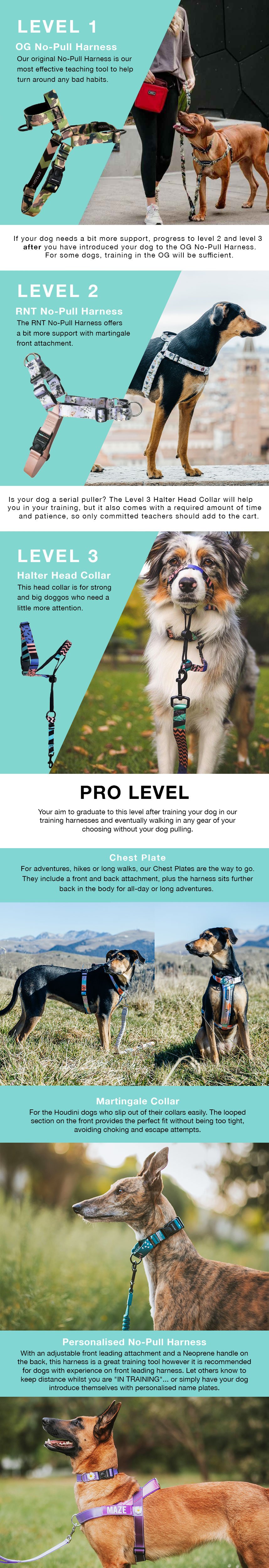We have 3 levels of No-Pull training tools to suit dogs of all shapes, size and strength.