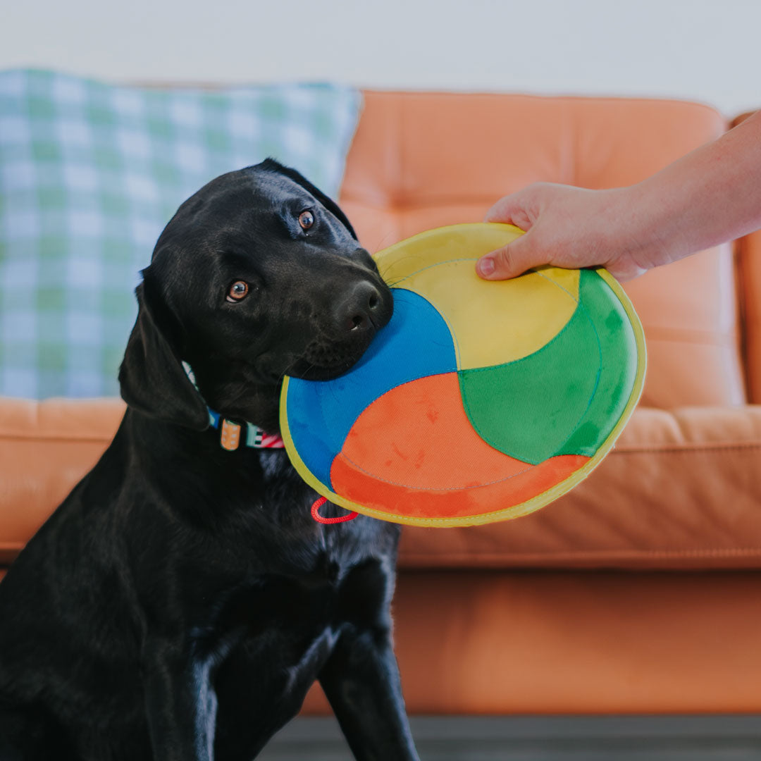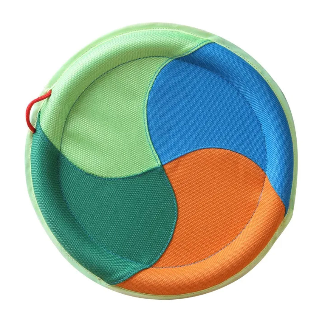 Although this frisbee looks great with its vibrant colours and seems to be sewn together well, It barely flies - it really shouldn’t be considered a frisbee. When thrown it tends to just plummet downwards and has hit my dog hard in the face several times. I’ve stopped using it for this reason. I’ve bought other frisbees from different brands that glide much better and are easier for my dog to catch/pick up from the ground. This one unfortunately did not meet expectations.