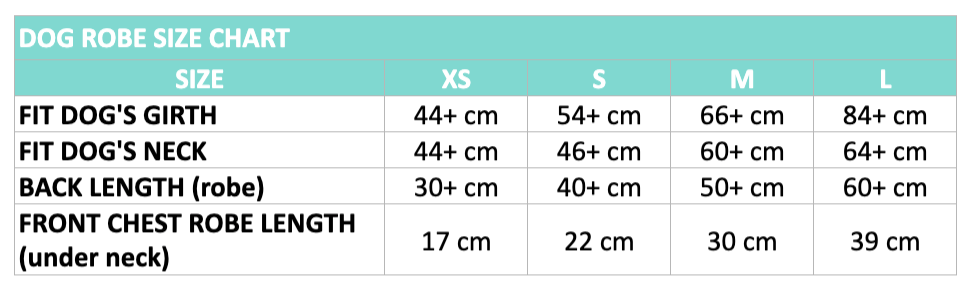 Absolutely love this robe for my babygirl and she loves it too! Perfect for after a shower to not get the entire house wet or after a cheeky beach swim. Super small and compact to bring with us everywhere! Lyla is a female lab with 26kg and wears a size medium :)